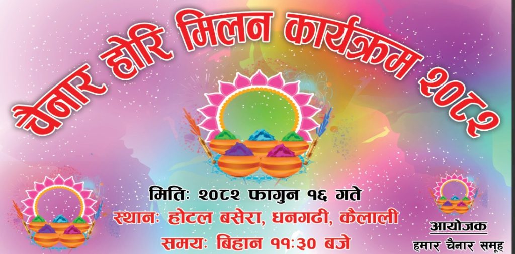 धनगढी, १७ फागुन । हमार चैनार समूहको आयोजनामा “चैनार होरी मिलन कार्यक्रम” सम्पन्न भएको छ ।