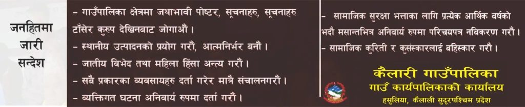 हसुलिया, २७ कात्तिक । नेकपा (माओवादी केन्द्र) कैलारी गाउँ कमिटीले विभिन्न १९ बुँदे माग सहित कैलारी गाउँपालिकालाई ज्ञापन पत्र बुझाएको छ ।