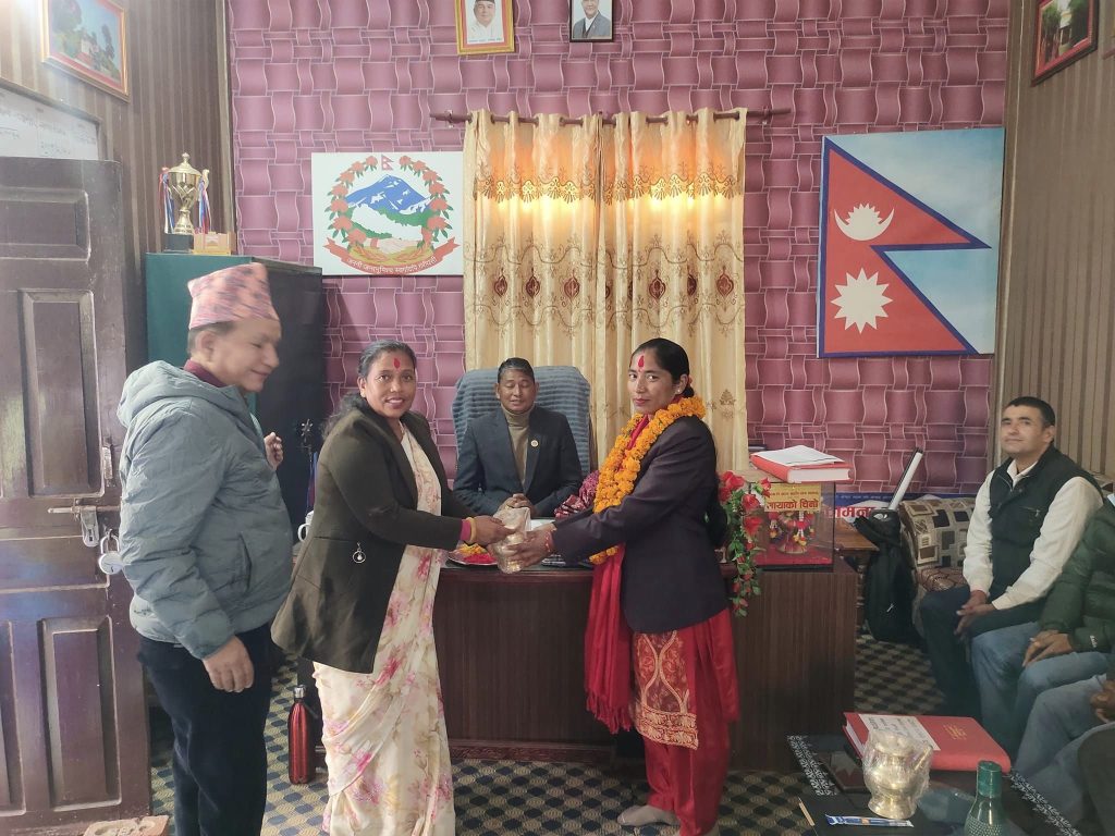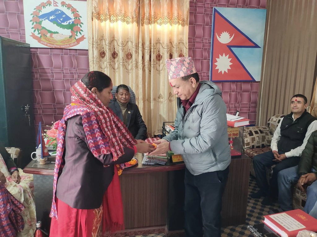 उहाँहे गाउँपालिका अध्यक्ष राजसमझ चौधरी, गाउँपालिका उपाध्यक्ष भगवतीकुमारी चौधरी, प्रमुख प्रशासकीय अधिकृत खगेन्द्रराज जोशी, सक्कु वडाके अध्यक्षहुक्रे, कार्यपालिका सदस्यहुक्रे, टमान शाखाके प्रमुख, तथा कर्मचारीहुक्रे नवनिर्वाचित जिसस प्रमुख टीकाकुमारी चौधरीहे बधाई डेटी खादा मालासे सम्मान करल रहिट ।
